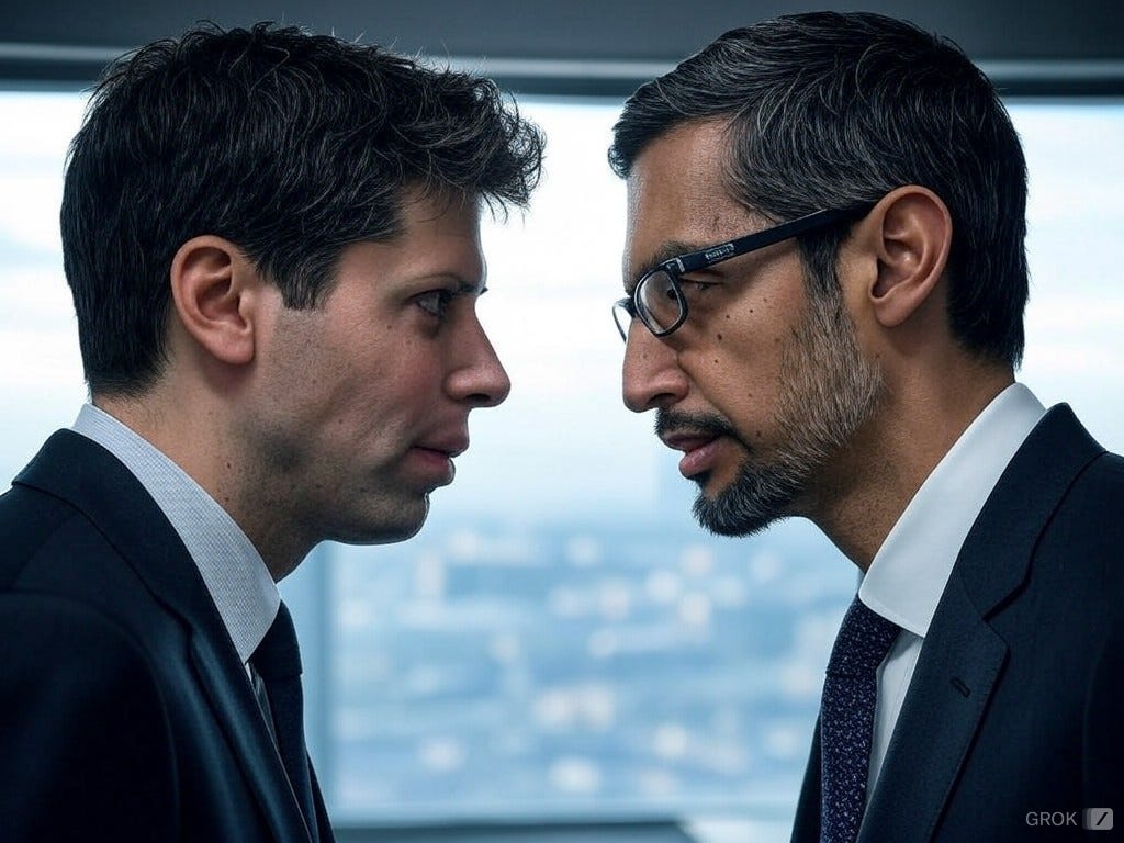 πͺ Sam Altman withstands Sundar Pichai's offensive with improvements to ChatGPT and tries not to be outpaced by Microsoft's moves with Anthropic and Musk, Bezos, and Zuckerberg's dealings with Trump